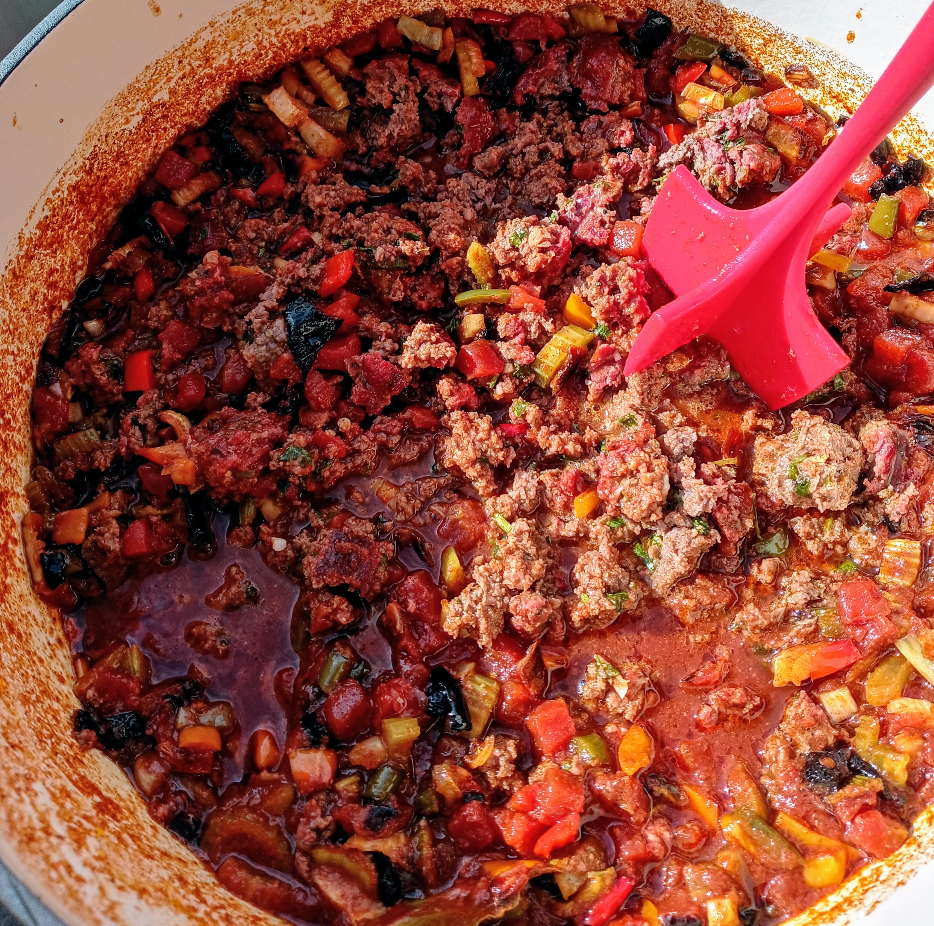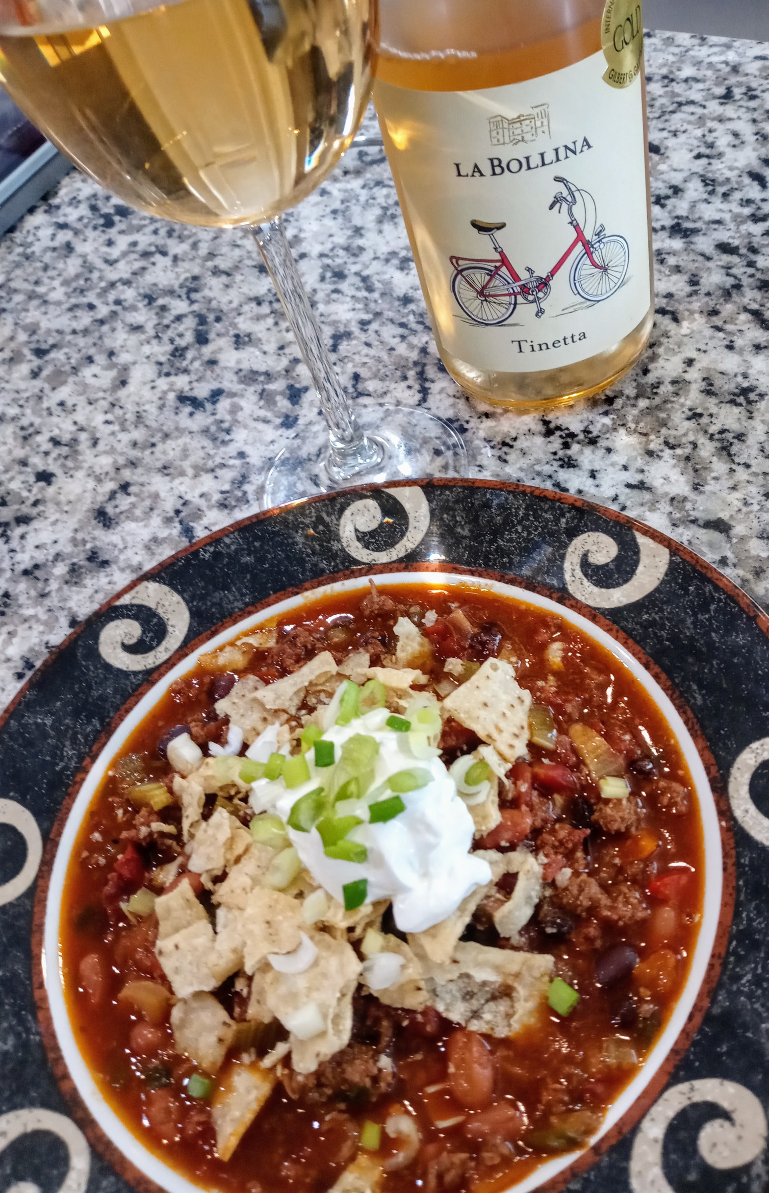 I paired this chili with a dry Nebbiolo rose. The cool acidity was a perfect palate refresher. Dark reds tend to amplify the heat in spicy dishes so be cautious of that.