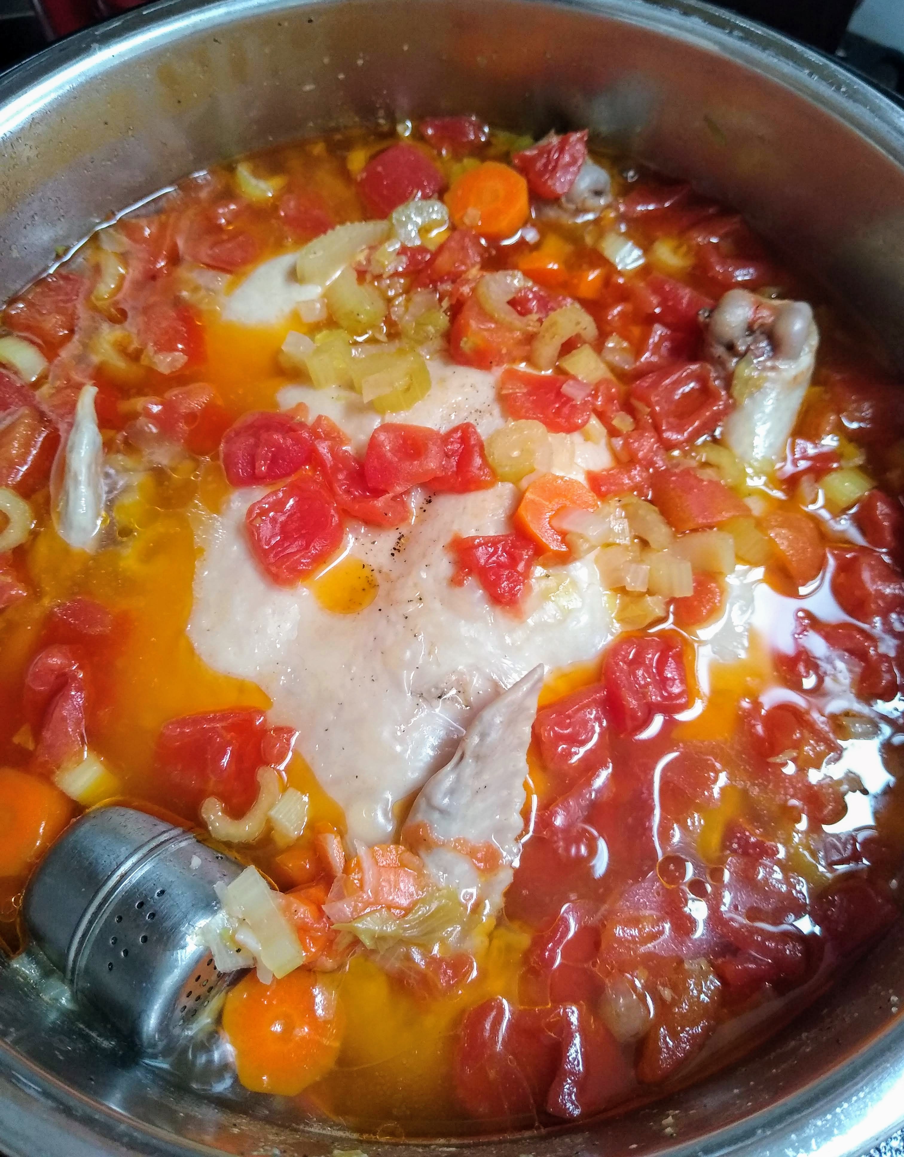 The first step is to get the soup cooking. Here is what you’ll throw in the pot: