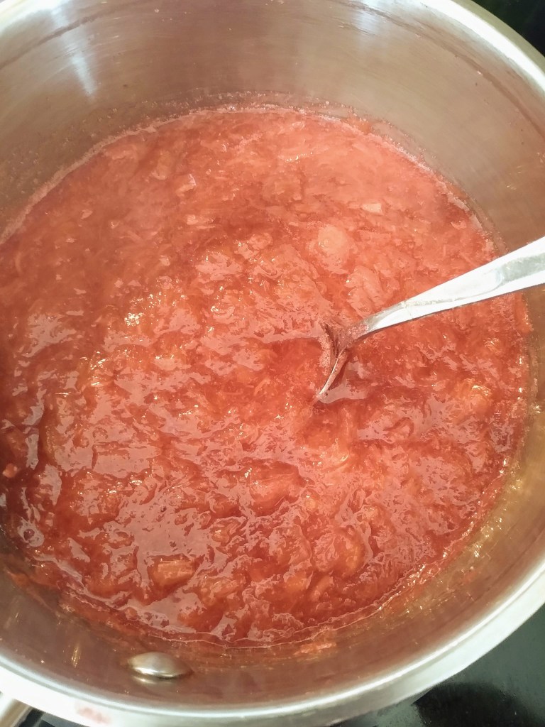 Note: this makes a pretty tart sauce, even considering that Jello also has a lot of sugar. Feel free to add more sugar or honey if you like it sweeter. Some recipes use as much as a cup of sugar. What you don’t use for the rolls is excellent on ice cream or even spread on toast. It will thicken more as it cools.